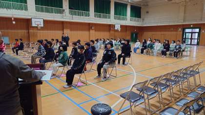 卒業式の練習をしています。長時間同じ姿勢で座り続けるのは大変ですが、6年生の門出を祝い、来年の自分の姿も重ねながら練習に臨みました。