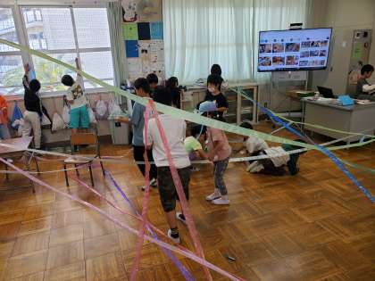 ひもでつないで教室を大変身させました。