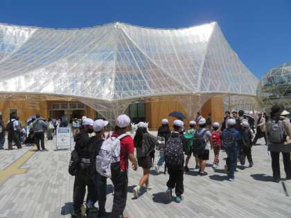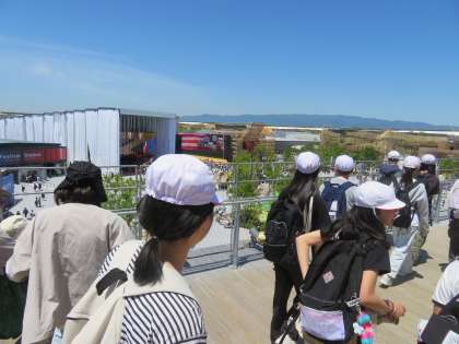 大屋根リングの大きさに子どもたちから「でかっ」「高くて気持ちがいいなぁ」といった声が聞こえました。