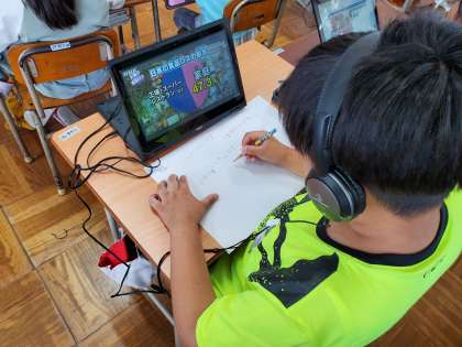 NHK for schoolでSDGsについて調べ学習をしました。動画を見て、初めて知ったことについて紙にまとめています。