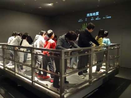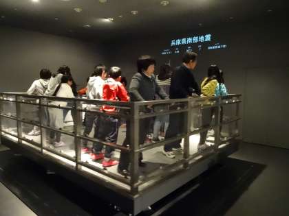 上段:地震体験コーナー。兵庫県南部地震。阪神淡路大震災のことです。直下型の突き上げる感じの揺れですが時間は短め。
