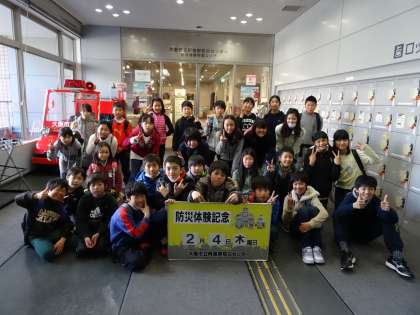 下段:修了書をいただいた後、防災センターの前で集合写真を撮りました。