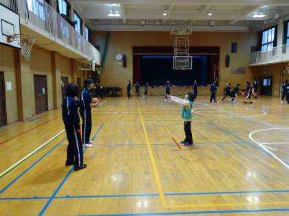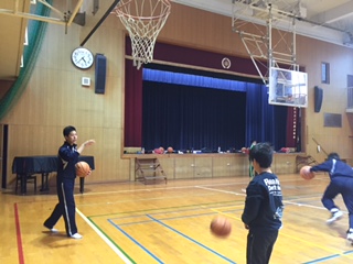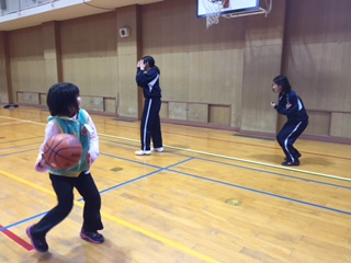 八幡屋小体連の参加は少なかったのですが、その分、中学生の先輩たちは丁寧に教えてくれました。リングも高く調整し、ボールも大きくなり、これまでとは違うなと、練習に混ぜてもらって実感したようです。