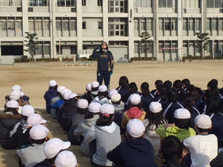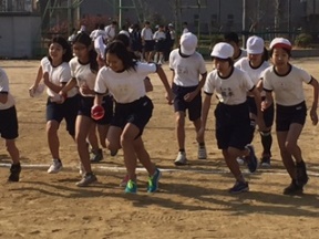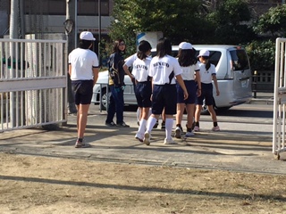 来週行なわれる小中合同駅伝大会の練習で港中学校に行きました。1年生が一緒になって練習を教えてくれました。3か所に分かれて、スタートの練習、外周コースの練習、全力疾走の練習と、回りながら練習しました。