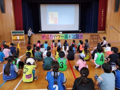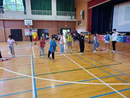 今日はワールドフェスタがありました。5年生と一緒にいろいろな国の遊びを体験しました。