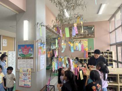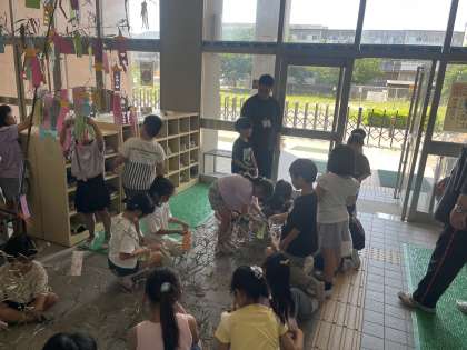 もうすぐ七夕です。みんなで短冊にお願いを書き、笹に飾り付けをしました!