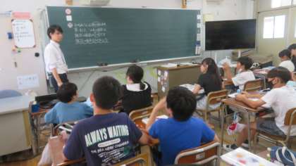 分数を使って物の数量を考えていきました。どんな式になるのかを数直線や公式を使い、友だち同士で話し合い、考えをまとめていきました。