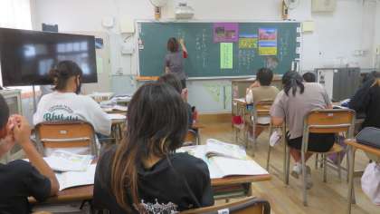 登山道での道中に落ちているゴミについて、みんなで意見を出し合っていきました。「きれいな景色が台無しになってしまう」「みんなで協力して拾って帰る」「ごみを出さないように工夫をする」など活発な意見が出ていました。