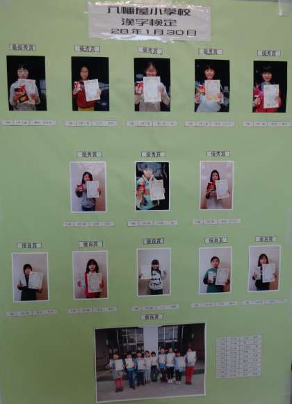 下段:表彰された児童の写真を玄関ホールに掲示しています。