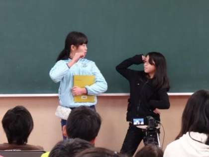 女子はネタをきっちり練って、男子は声と動作の迫力で勝負していました。終わった後、先生に感想をききましたが、自分たちのことを取り上げてもらえるか息を飲んで先生のほうを見つめていました。