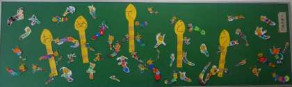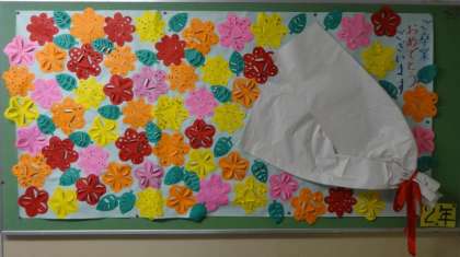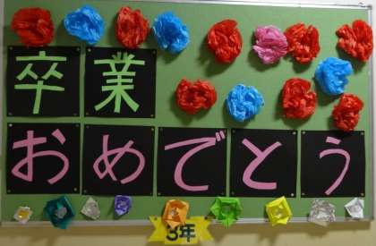 卒業式に向けて、各学年で卒業を祝う掲示物を作って、飾っています。