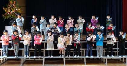 入学式に向けて、1年生が講堂で練習していました。呼びかけ、鍵盤ハーモニカでの演奏、歌の練習をきちんとしていました。入学式本番では、お兄さんお姉さんとしてどんな顔をして登場するするのか楽しみですね。