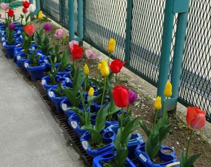 中段:チューリップの花もきれいに咲いています。