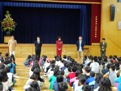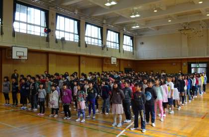 校長先生のお話の後、生活指導担当の先生からは、自分一人だけでなく、みんなが楽しくなる「楽しさのおすそわけ」をしてほしい。安全で楽しくなる学校生活を送るためにルールもあるんです。というお話がありました。