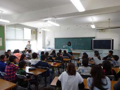 中段:5年1組 外国語「あいさつゲームなど」
