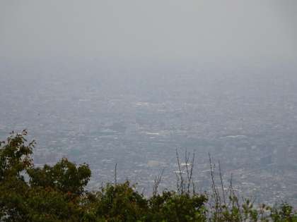 上段:生駒山上遊園地から見た大阪の街。黄砂の影響でくもって見えました。
