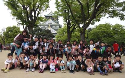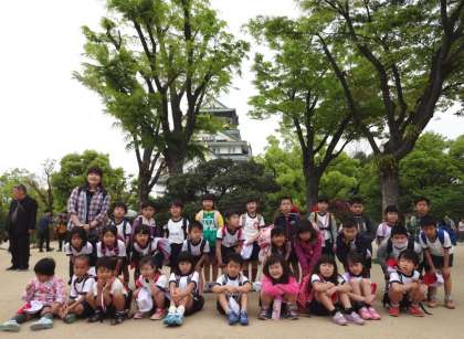 並んでいる児童の前に入ってきて、大阪城と並んでいる児童をバックに自分の写真を撮ろうとする観光客もいてビックリしました。