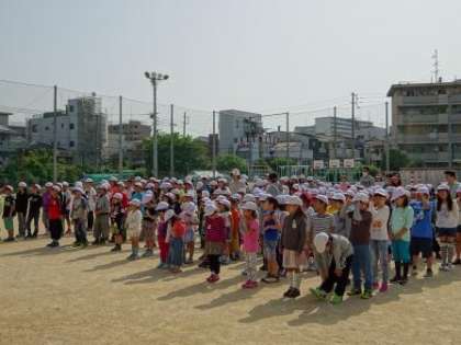 上段:今月の月目標は、「元気よくあいさつをしよう」です。登校時に地域の方が正門で「おはようございます」と子供たちに声をかけてくださっていました。「おはようございます」と自分から明るい声を出せば、自分も相手も気持ちよくなりますね。
