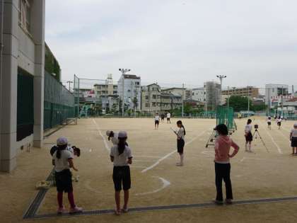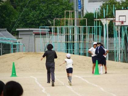 5・6年生は、午後にソフトボール投げと50M走を計測しました。上級生はさすがにちがうなあと感じました。最後に職場体験で来ていた野球部の生徒は、50M越えでみんな感心しました。