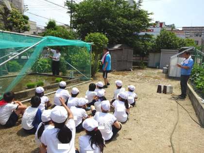 上段:田植えのやり方や川の水をきれいにすることの大切さについて話をしていただきました。