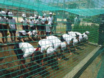講師の方に稲の苗を持って来ていただき、5年生が田植えをしました。