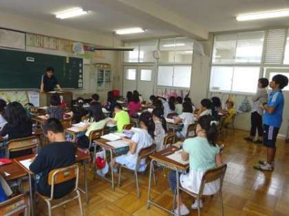 今日の午後、港中学校の先生が授業参観に来校されました。学習面での小中連携として、港中学校の先生が、八幡屋小学校と池島小学校の授業を参観しました。6月には、小学校の先生が港中学校の授業参観をします。