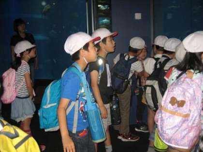 港区の「海遊館生物教室」事業を活用して、2年生が海遊館の見学をしました。海の生き物をゆっくり見学し、エサやりの様子に興味をもったり、タッチプールでサメやエイのからだにさわったりして、よい経験になりました。