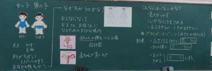 「男の子・女の子」のテーマで、T先生が、男の子と女の子の体のちがいなどの授業をしました。来週月曜日のプール開きに向けて、更衣の時のマナーやエチケットも学ぶ機会になりました。