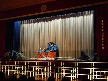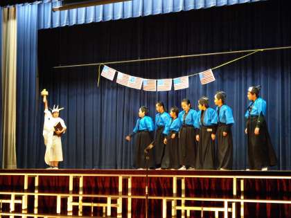 凝りに凝った衣装で、江戸時代の雰囲気が見事に表現されています。大海原の波の様子もリアルです。さすが6年生です。