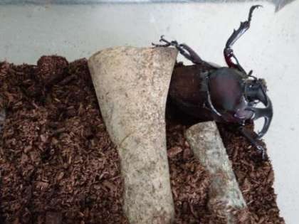 下段:N先生が卵から育てたカブトムシ。メスは土の中にもぐってでてきません。