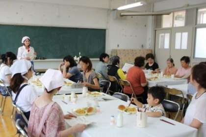 PTA保健・給食委員会主催で行われました。校長先生のあいさつの後、学校栄養職員の先生から学校給食についてのお話がありました。その後、給食の試食を行ないました。「子どもたちにきくと、おいしいという声が多く、ありがたいです。」「大変おいしくいただきました。安価で作るのは努力がいると思います。」「地産地消を推進してほしい。」などのご意見をアンケートに書いていただきました。試食会後、1年生を中心に給食参観も行われました。