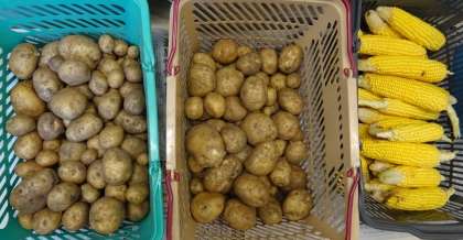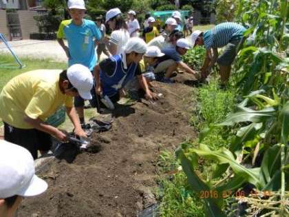 今日は、6年生が学年農園のジャガイモ・とうもろこし・インゲン豆の収穫をしました。明日ぐらいに持って帰ると思いますのでご家庭でもお楽しみに。