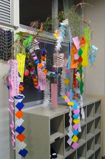 下段:「なかよし学級」の笹。2時間目に学級のみんなで完成させました。笹はN先生が家から、JR・地下鉄を乗り継ぎ、持ってきてくださいました。