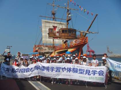 上段:サンタマリア号乗船の前で集合写真