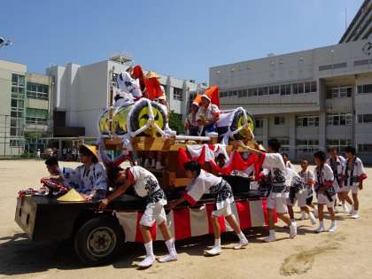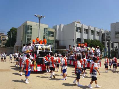大太鼓に続いて、小太鼓が入り、いきいき活動の児童や教職員・保護者の前で暑さの中がんばっている姿を見せてくれました。