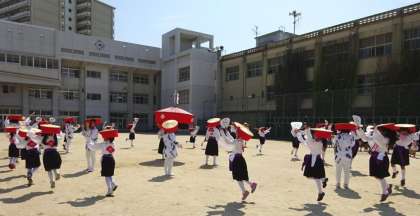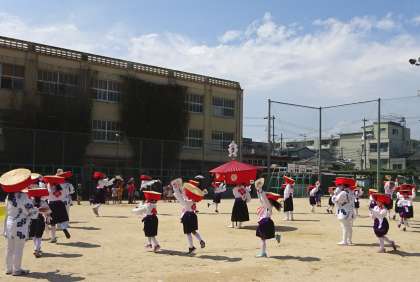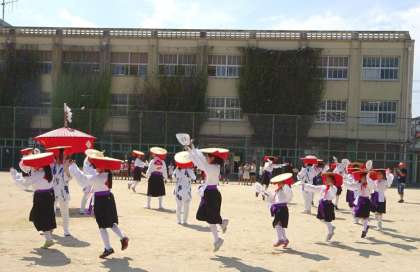 最後に運動場の真ん中で住吉踊りを見せてくれました。