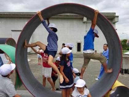 上段:浄水池の底にたまった泥は建築材料に使われます。