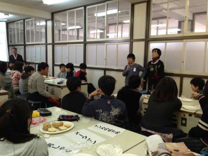 2時間目は、3種類のジャガイモの食べ比べをしました。「男しゃく」「メークイーン」「インカのめざめ」の見た目や味の違いを発表しました。