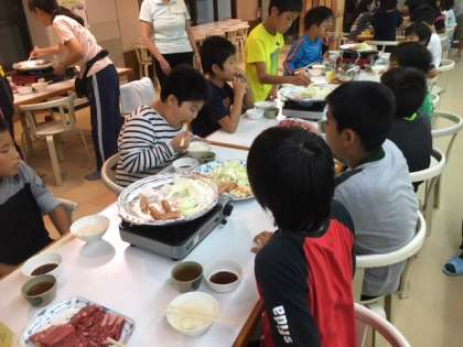メニューは焼き肉でみんなおいしそうにたくさん食べていました。