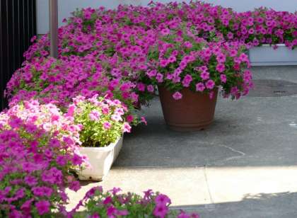 中・下段:切り戻しによって、サフィニアマックスが満開になっています。今回が最後の切り戻しです。