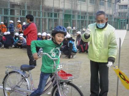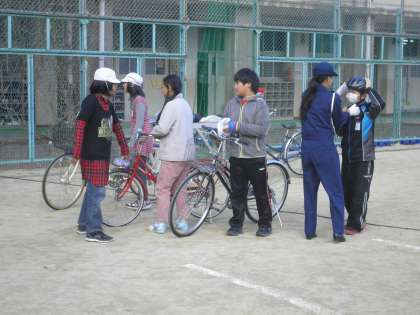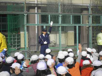港警察、区役所、地域見守り隊のご協力の元、11月29日に全学年の児童が交通安全の体験学習に臨みました。高、中、低学年に分かれ、自転車の安全な乗り方や、講義、安全な歩行について学びました。寒風吹きすさぶ中、みんな元気に学習しました。