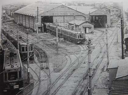下段:市電の港車庫(昭和43年頃)。昭和29年に新設され、昭和36年に地下鉄建設のため縮小された後、昭和43年に廃止されました。