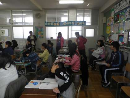ほかの先生方も授業参観し、検討会を持ち意見交換などで研究を深めています。