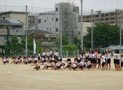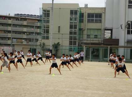 今週の天候が心配ですが、今日は運動場に出て、団体演技の練習などをしました。5・6年は、運動場・講堂を使って練習しました。
