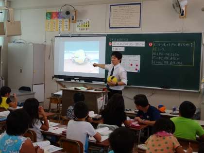 「まるい形を調べよう」の単元で、「球」や「球」の「中心」、「半径」、「直径」について学習しました。実物やデジタル教科書等を使って、わかりやすく学ぶことができました。