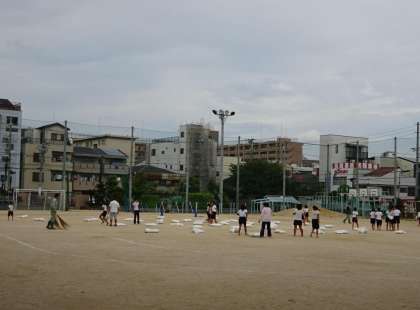 来週の天候も微妙ですので、今日急きょにがりまきをしました。5・6年生に手伝ってもらって運動場のトラックに並べ、教職員でまきました。いいコンデションで運動会を迎えるためです。
