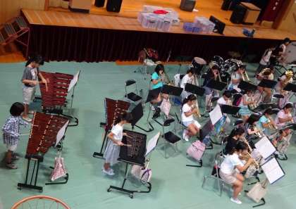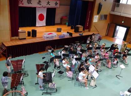 明日9月19日(月)に行われる地域の敬老会に向けて、会場準備をしました。キッズバンドの児童も大活躍でした。準備の後、明日演奏する曲の練習を重ねました。