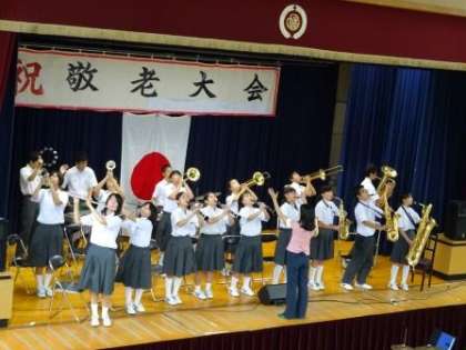 八幡屋地域の敬老会が本校講堂で行われ、たくさんの方が集まられました。