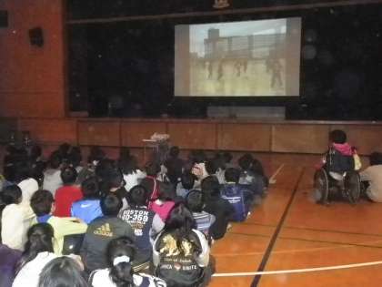 中:池島小との交流では、「校歌」と「地球星歌」の合唱を披露しました♪