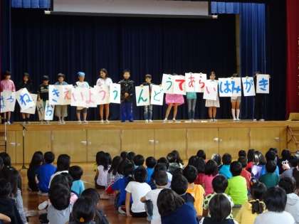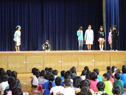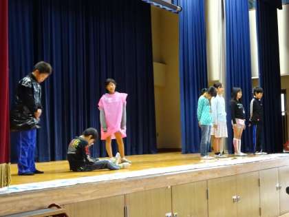 健康美化委員会の児童が劇の形で、健康な生活について発表しました。